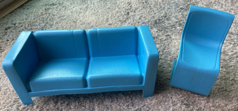 Barbie Mod Furniture Turquoise Blue Chair & Couch Townhouse Mattel 1973