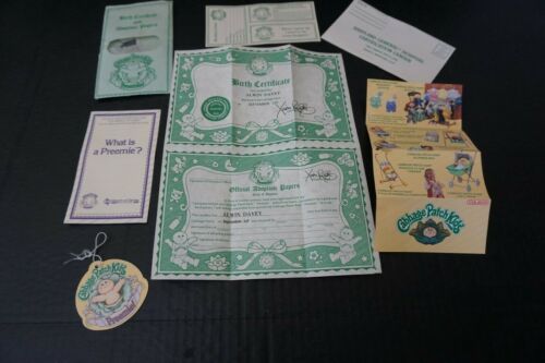 Title (ebay affiliate link): Cabbage Patch Kids Preemie Birth Certificate Adoption Papers Tag Alwin Davey 9/1