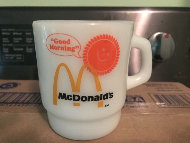 Title (ebay affiliate link): Vintage Fire King McDonald Good Morning Sunshine Coffee Cup/Mug White Milk Glass