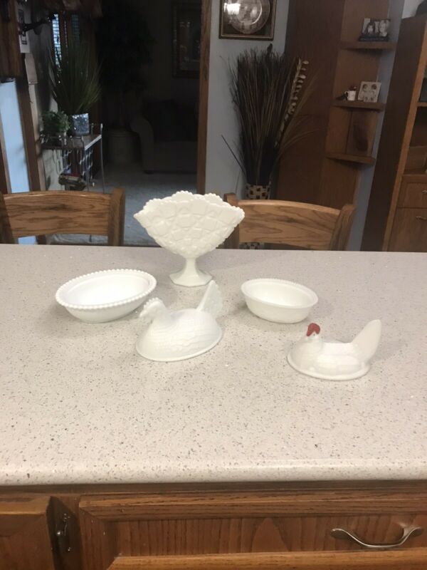 Title (ebay affiliate link): Two Vintage White Milk Glass Hens And 1 White Milk Glass Vase-Lot Of 3