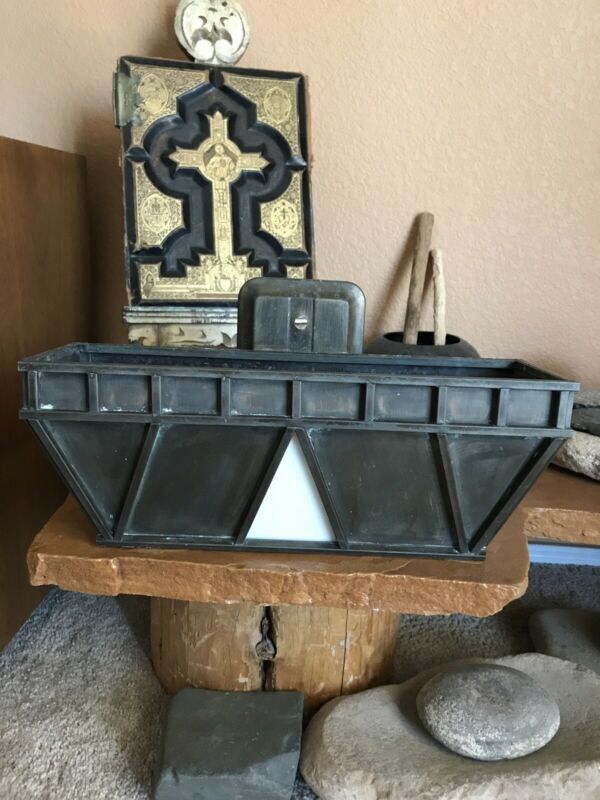Georgian Art Lighting Arts & Crafts Gothic Copper Light Fixture Milk Glass Vtg