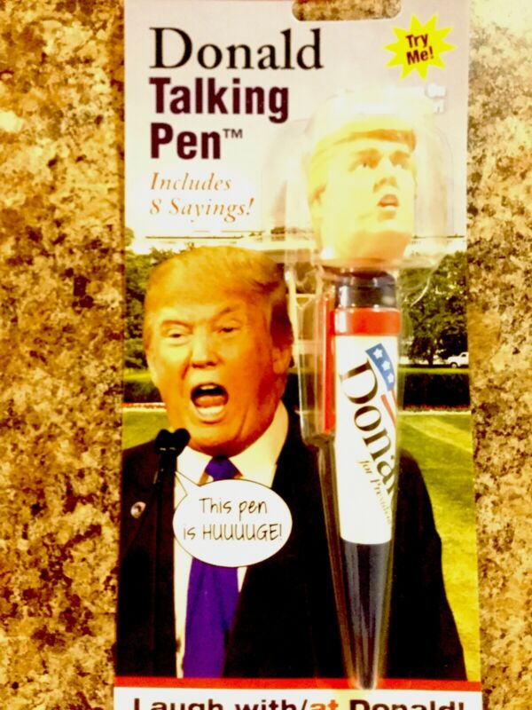 Title (ebay affiliate link): President Donald Trump Talking Pen Action Toy 8 Different Sayings Funny Phrases