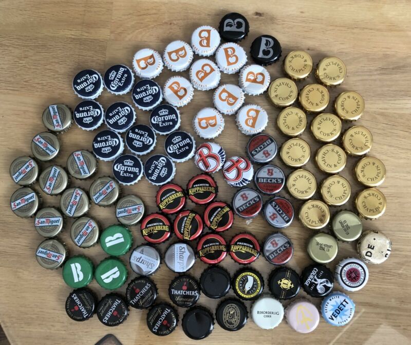 Title (ebay affiliate link): Assorted Bottle Top Bundle Approx 87 Tops Cider Beer Soft Drink Lot
