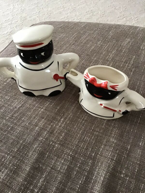 Title (ebay affiliate link): Vintage Black Americana Sugar/ Cream Set C C Co. Ceramic Pottery Chef / Cook