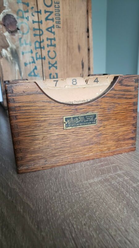 Vintage ARTS CRAFTS OAK Dovetail Wood 3X5 Index Card File