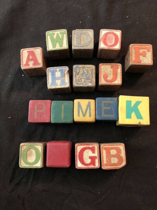 17 PC VINTAGE ANTIQUE WOOD BLOCKS MIXED LOT