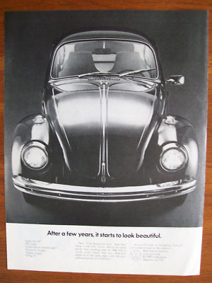 Title (ebay affiliate link): 1969 Volkswagen Bug "Starts to Look Beautiful" Ad