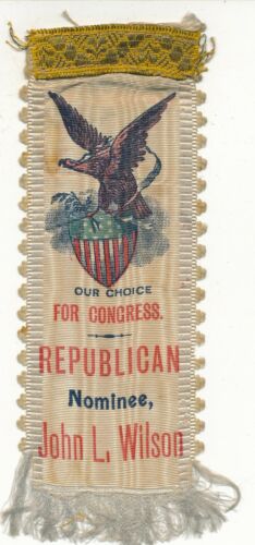 Title (ebay affiliate link): 1889 John L Wilson for US Congress 5 1/2" cloth ribbon Washington WA