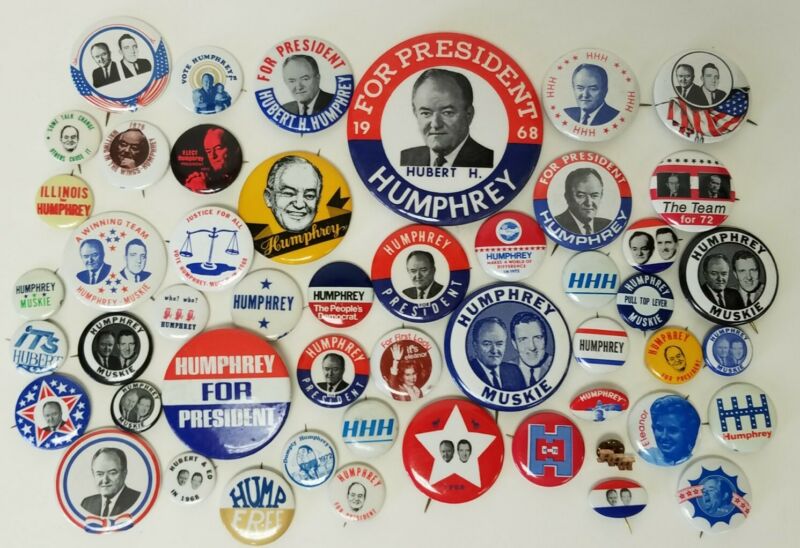 Title (ebay affiliate link): 50 Vintage 1968 and 1972 Vintage Hubert H. Humphrey Presidential Campaign...