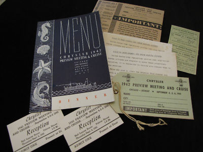 Title (ebay affiliate link): 1941 1942 CHRYSLER Sales Cruise Meeting 9pcs w/ menu