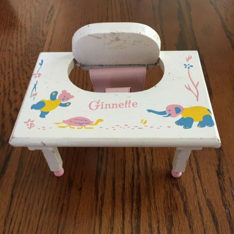 Title (ebay affiliate link): Vintage 1950''s Vogue Ginnette doll feeding chair/table painted wood orig owner