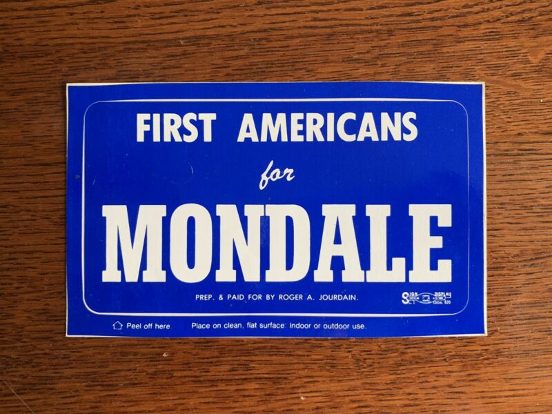 ''84 Walter Mondale Campaign bumper sticker postcard First American Native Indian