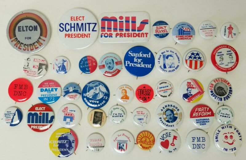 Title (ebay affiliate link): Lot of 40 Vintage 1972 Presidential Candidate Campaign Pinback Buttons