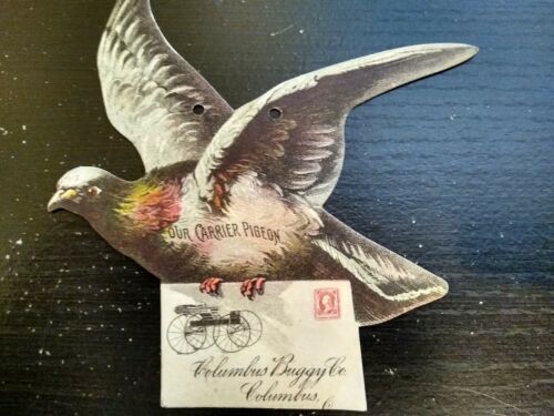 Title (ebay affiliate link): Die Cut Carrier Pigeon Envelope Trade Card Columbus Buggy Co. Ohio M. Peters