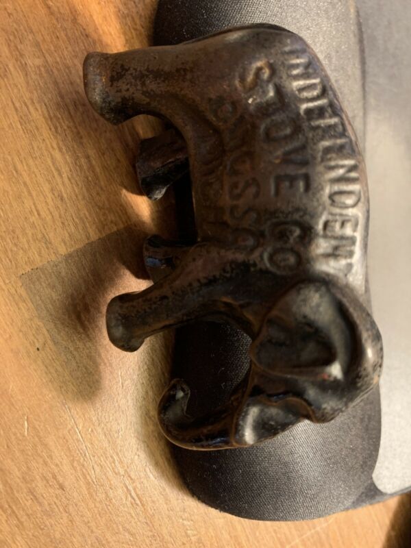 Title (ebay affiliate link): Vtg Cast Iron Elephant Advertising Independent Stove Co Paperweight Owosso MI