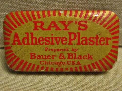 Title (ebay affiliate link): Vintage Household Advertising Tin-BAUER BLACK-RAY''S ADHESIVE PLASTER-Tape Can