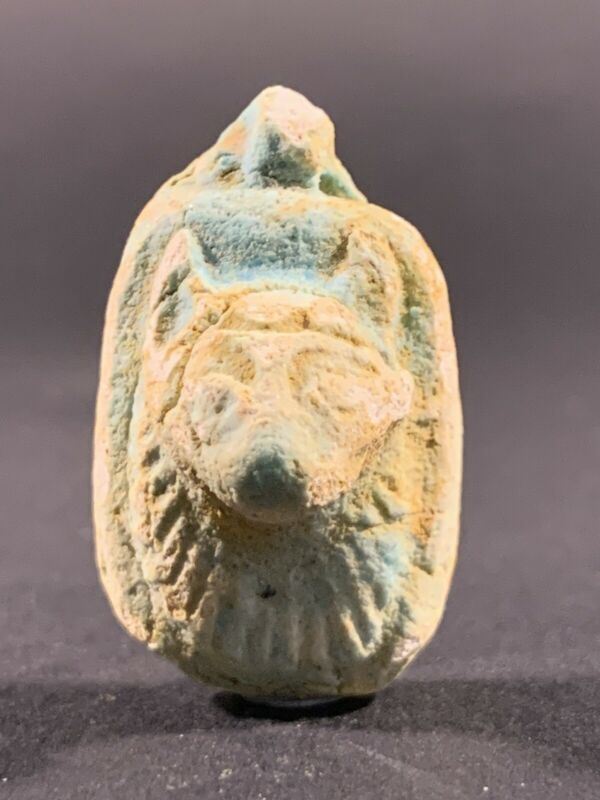 Title (ebay affiliate link): ANCIENT EGYPTIAN FAIENCE AMULET OF GOD OF WAR MAAHES - STUNNING - CIRCA 600BCE