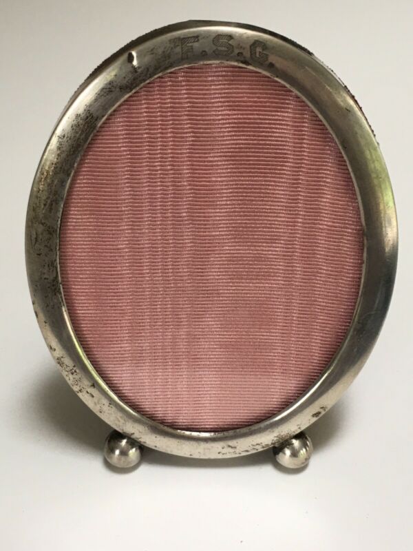Title (ebay affiliate link): Vintage Sterling Silver Oval Ball Footed Picture Frame Maroon Felt Back