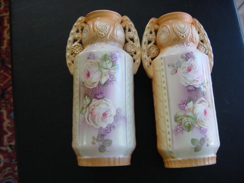 PAIR OF ROBERT HANKE RH AUSTRIA HAND PAINTED ROSES VASES