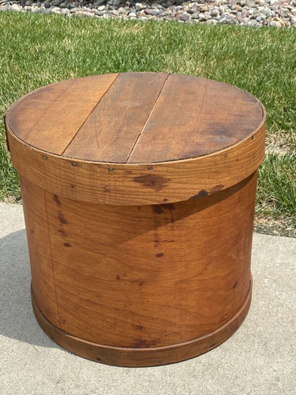 Antique Primitive Bent Wood Box with Lid 13"h x 15.5" Cheese Box