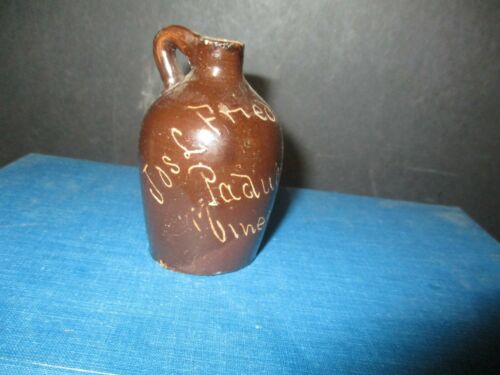 Antique STONEWARE MINI SCRATCH BROWN JUG FRIEDMAN PADUCAH KY VINEGAR E156 PL