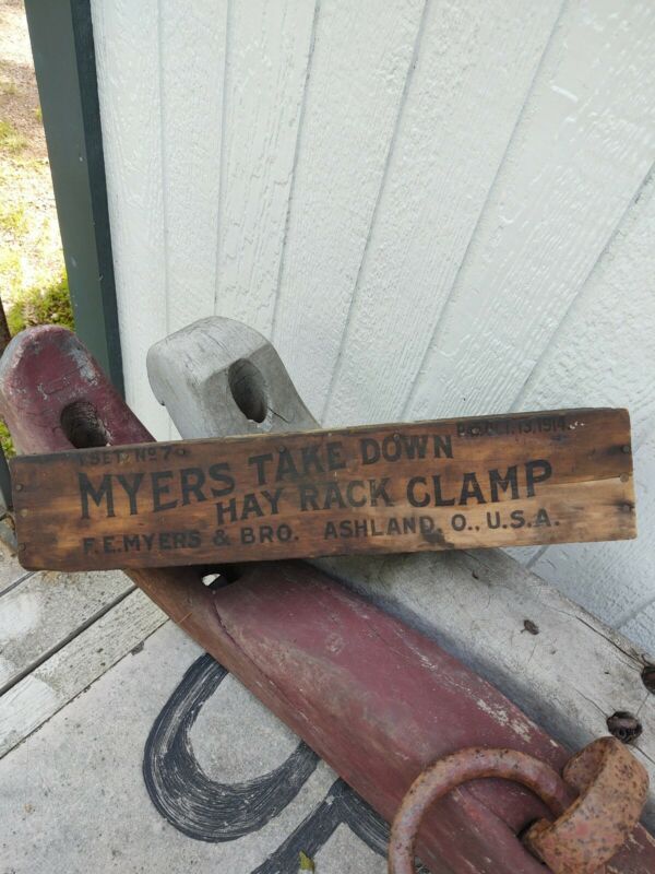 Title (ebay affiliate link): Vintage F. E. MYERS & BRO. CO. Ashland Ohio HAY RACK CLAMP Wooden Box PAT. 1914