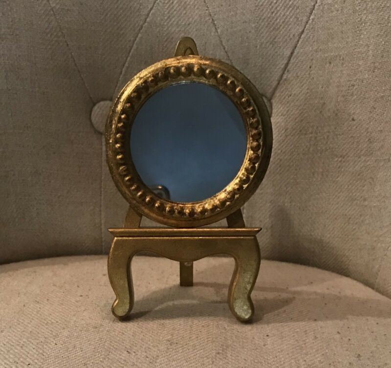 Vintage Italian Florantine Wood Mirror Gold Gilt Round Small with Easel