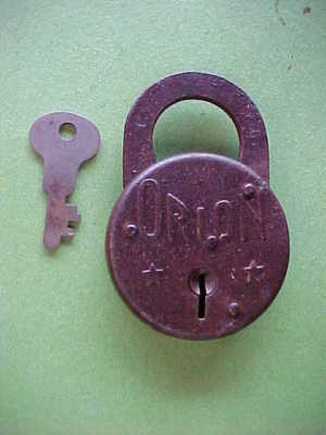 ANTIQUE "ORION" PADLOCK W/KEY. PICTURE OF STARS.