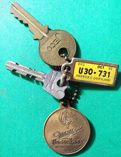 Title (ebay affiliate link): Vintage 1961 Miller High Life Beer Fob Chain JECO Milwaukee Key Wisconsin Plate