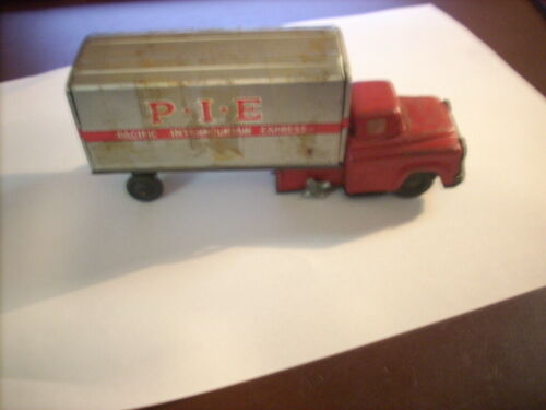 Title (ebay affiliate link): older tin toy truck, tractor trailer, front axle is friction, missing 2 wheels