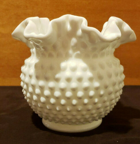 Vintage White Milk Glass Ruffled Hobnail Bowl