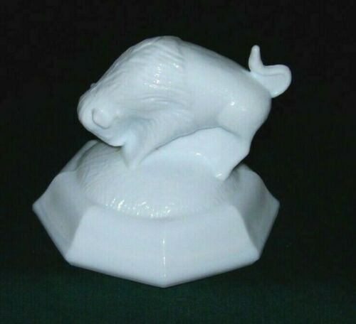 Nifty Milk Glass Buffalo Figurine Paper Weight - Excellent