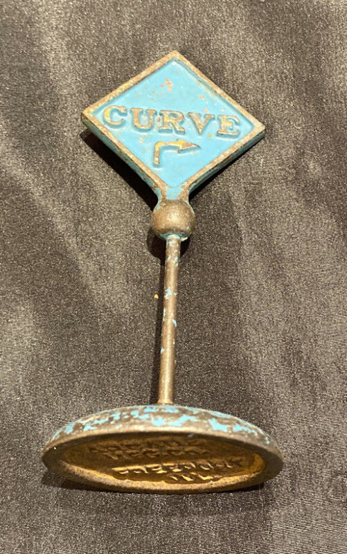 Antique Cast Iron Arcade Railroad Curve Sign All Original Rare