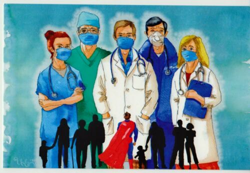 Title (ebay affiliate link): DOCTORS Super Heroes Face Masks Pandemic NEW Russian Postcard