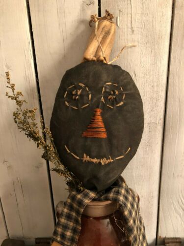 Primitive Pumpkin Doll Folk Art Doll Halloween Poke Crock Shelf Real Stem