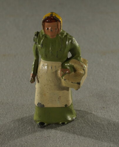Title (ebay affiliate link): ORIGINAL VINTAGE ANTIQUE LEAD TOY FIGURE WOMAN CARRYING BASKET (INV. NO. 814)