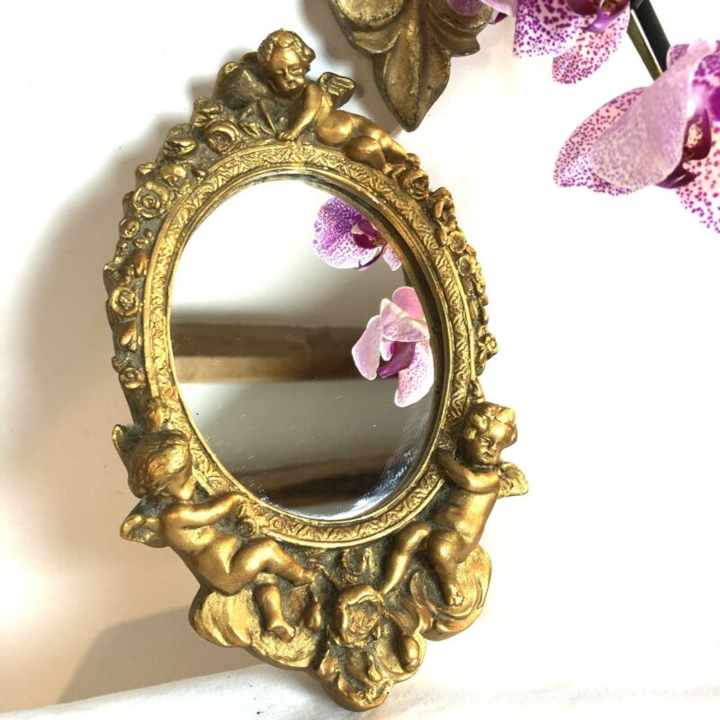 Title (ebay affiliate link): Vintage gold cherub/angel plaster mirror 23cm x 14cm