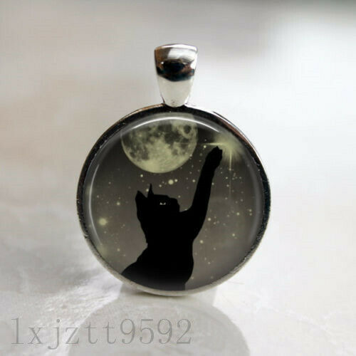 Title (ebay affiliate link): Cat and Moon Space Lunar Image Necklace Pendant Chain Antique Silver Jewelry