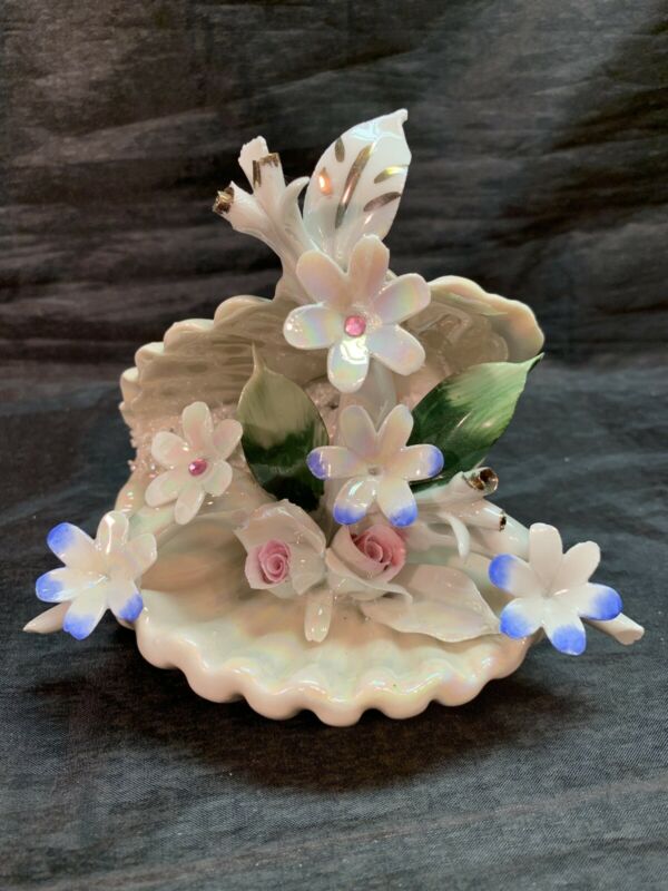 Title (ebay affiliate link): Vintage Capodimonte Stilart Iridescent Ceramic Clam Shell & Flowers Made Italy