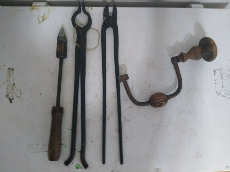 OLD USED VINTAGE TOOLS BLACKSMITH Tools Antique steel tongs