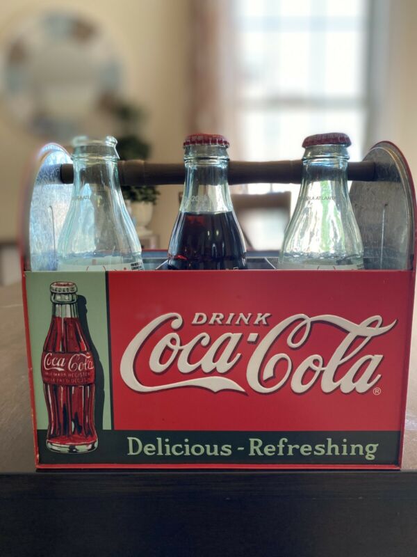 Title (ebay affiliate link): Coca-Cola Galvanized Tin Picnic Caddy Coke Utensil Napkin Bottle Holder Carrier