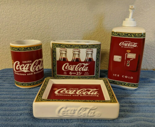 Title (ebay affiliate link): Coca Cola Bathroom Set - Toothbrush Holder, Soap Dish, Lotion Dispenser & Cup
