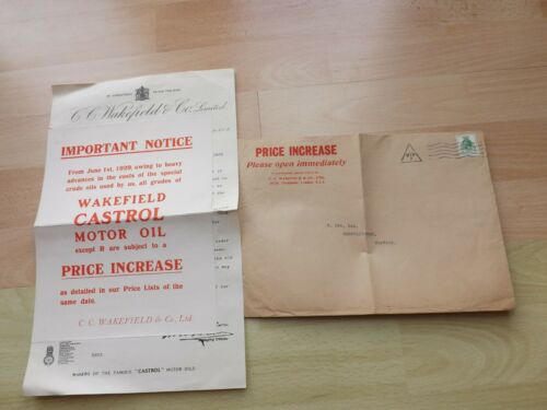 Title (ebay affiliate link): Rare 1929 Wakefield Castrol Motor Oil Price Increase Notice In Original Envelope