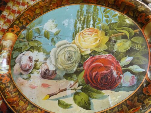 Title (ebay affiliate link): Sweet Primitive Antique Tin Tray Roses Design Shabby Patina 16 1/2" X 13 1/2"