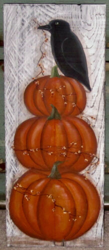 Title (ebay affiliate link): *~*PRIMITIVE*~*HP FOLK ART STACKING PUMPKINS * BITTERSWEET* CROW* RECLAIMED WOOD