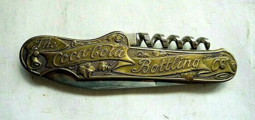 VINTAGE BRASS COCA COLA EMBOSSED SURFACE 1 BLADE & CORKSCREW POCKET KNIFE BEAUTY