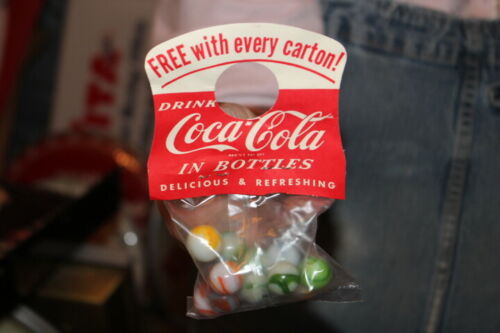Title (ebay affiliate link): Original Vintage 1950''s Coca Cola Glass Marbles Unopened Toy Soda Pop Sign