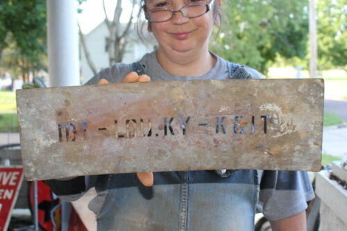 Title (ebay affiliate link): Vintage c.1900 K&IT Kentucky Illinois Railroad Gas Oil 16" Brass Stencil Sign