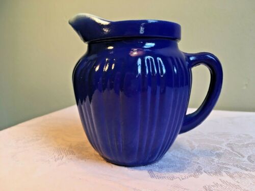 1940''''s Hazel Atlas Gay Rainbow Platonite Milk Glass Blue Creamer Pitcher