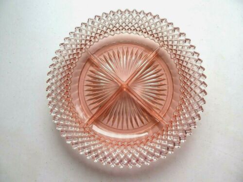 Title (ebay affiliate link): HOCKING PINK DEPRESSION GLASS MISS AMERICA FOUR PART RELISH DISH 1935 - 1938